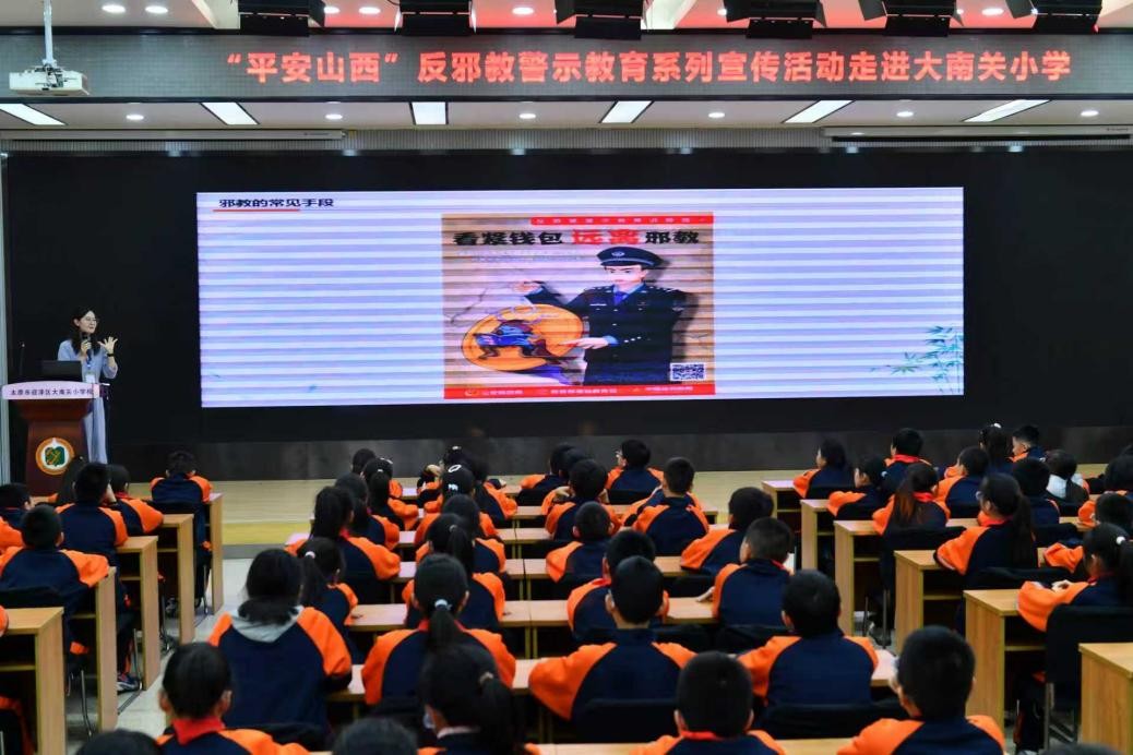 12月17日下午,山西省反邪教协会联合山西大学马克思主义学院走进太原市迎泽区大南关小学校,开展了“平安山西”反邪教警示教育系列宣传活动。
