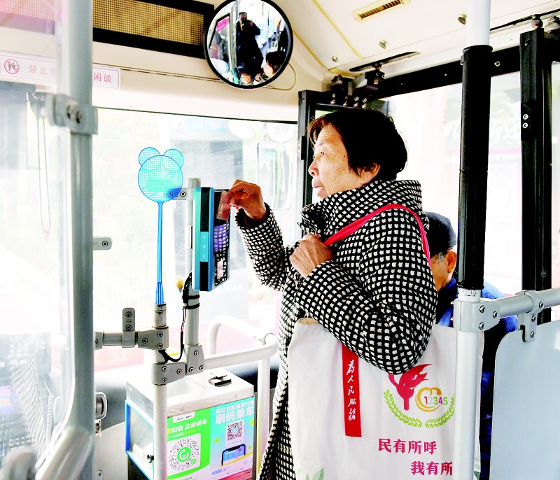 “滴,敬老卡!”67岁的马阿姨刷敬老卡后,在前排落座,“经常坐这趟公交车出行,我们老年人在车上享受着特殊的关爱。”