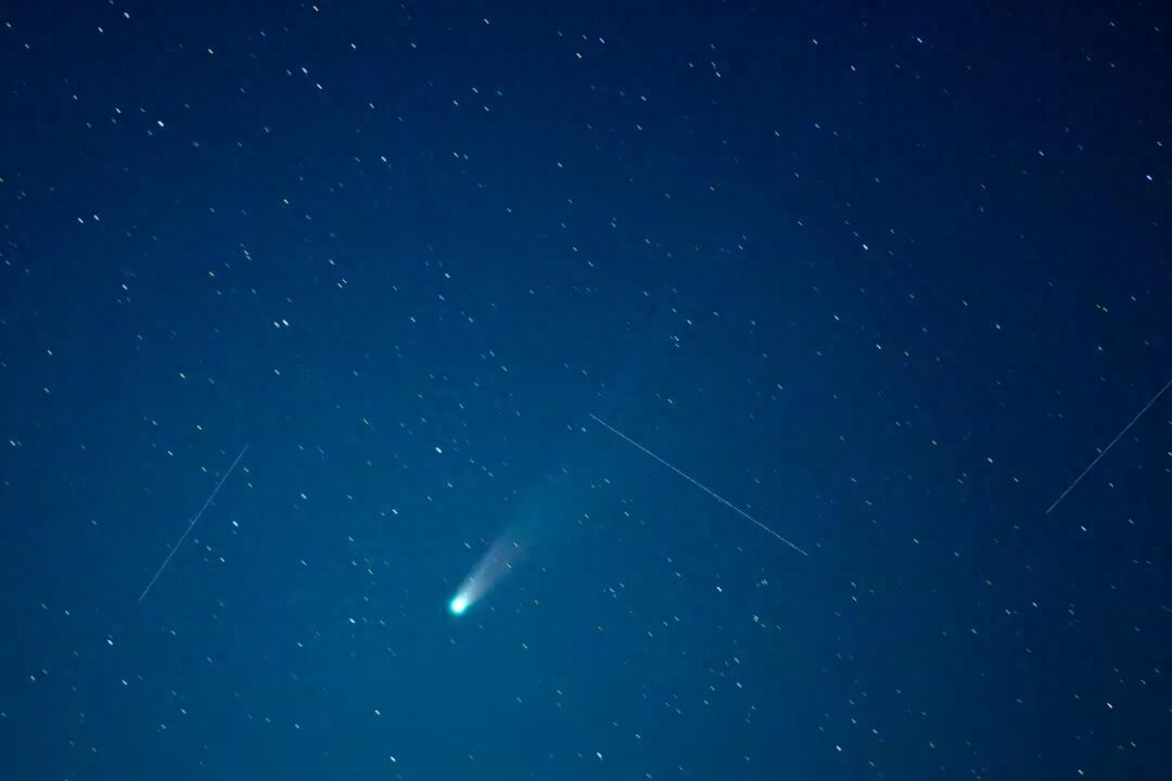 近期,不少天文爱好者成功观测并拍摄到这位“天外来客”,从公布的照片看,莱蒙彗星的彗核呈绿色,彗尾很长,呈淡蓝色。