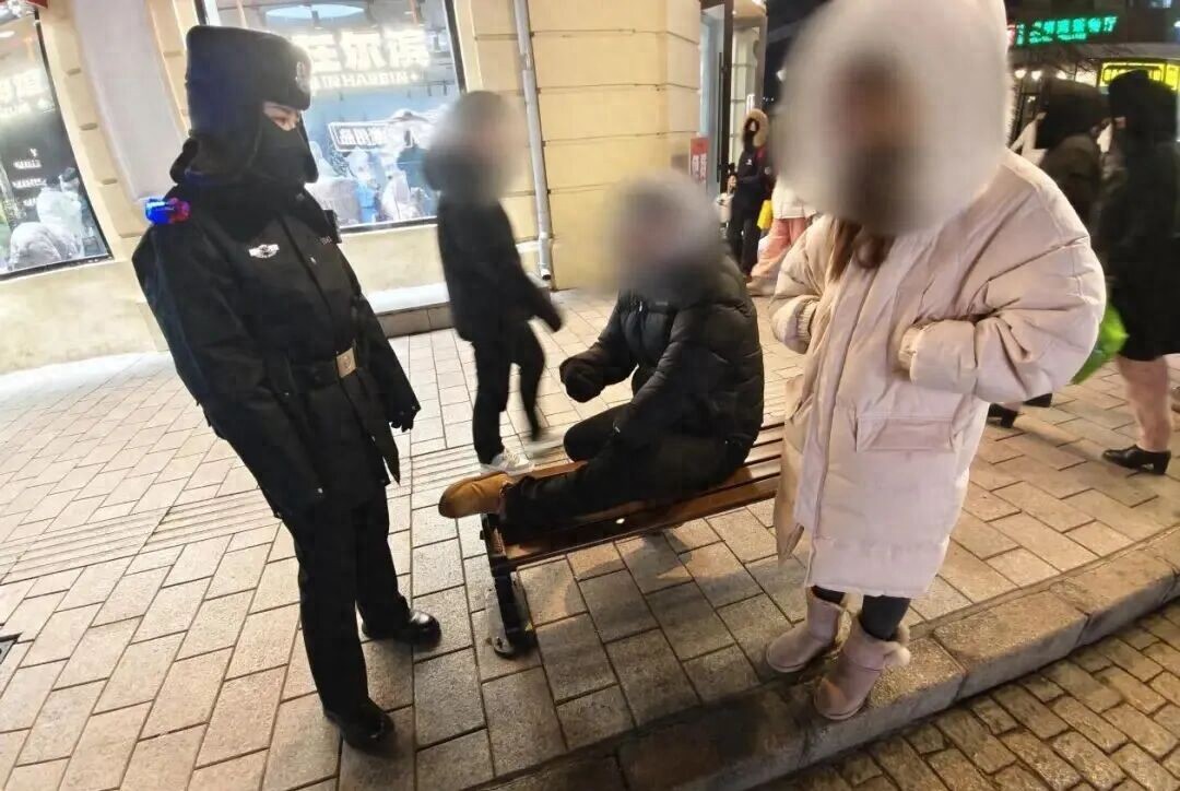 近日,黑龙江哈尔滨中央大街巡逻民警正在街面执行巡逻任务时,一名女子神色慌张地快步上前求助:“我男朋友小腿有静脉曲张,突然出血怎么都止不住!”民警立即跟随女子赶往现场,只见一名男子面色苍白地瘫坐在长椅上,双手紧紧按着小腿,鲜血已浸透裤管。