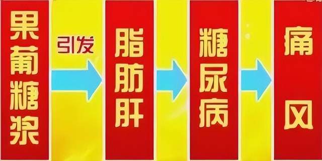 果糖在肝脏代谢时会产生大量嘌呤基,最终转化为尿酸。美国波士顿大学一项进行了12年的追踪研究发现,每天喝2次以上含果葡糖浆饮料的人,痛风风险比普通人高1.85 倍。