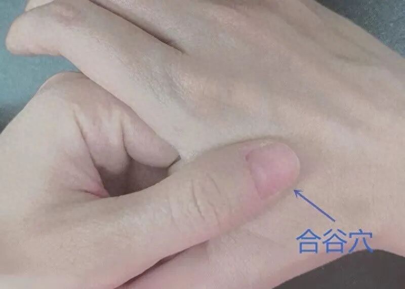 大肠经穴。位于手背,在第1、2掌骨间,约平第二掌骨中点处。以拇指切按,用于缓解中风、中暑、虚脱、癫痫、癔症等原因引起的晕厥。
