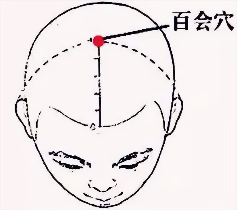 督脉穴。位于头顶,在头正中线上,后发际上7寸,或两耳尖连线与头正中线的交点处。以拇指揉按,用于缓解中暑、虚脱。