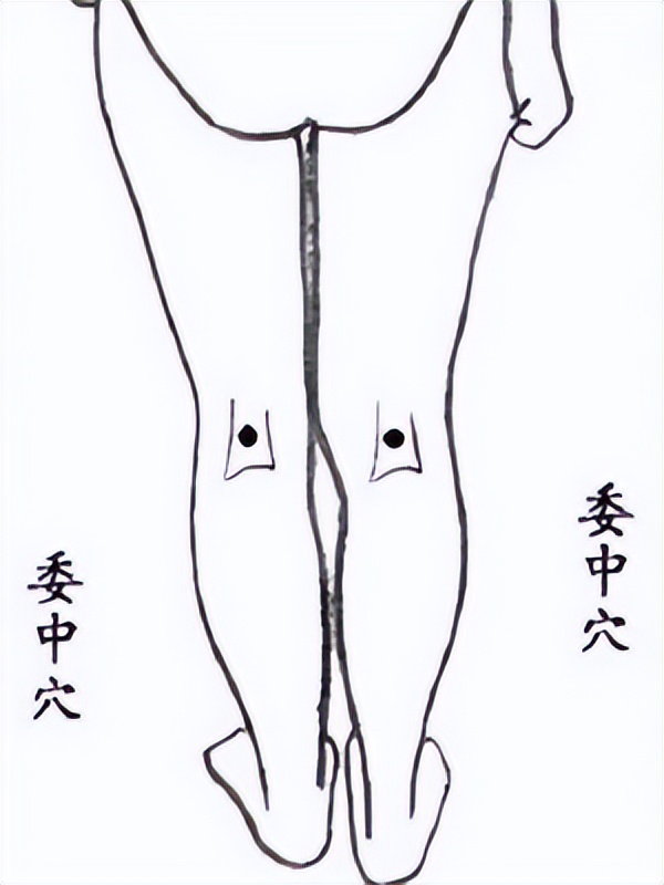 膀胱经穴。位于腘窝,在腘横纹中央。以拇指重力揉按,功用同合谷穴。