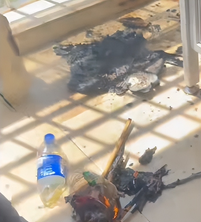 阳台堆放的纸壳烧成灰。图源:中国消防