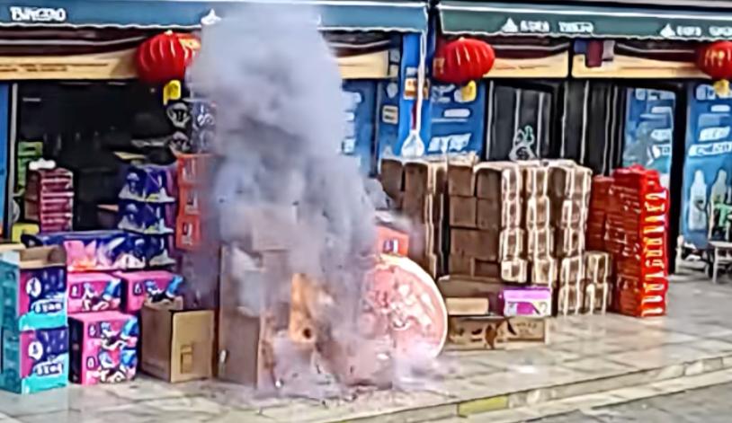 2025年1月,河南省南阳市一男子从楼上扔烟头,引燃楼下烟花爆竹摊,所幸无人员伤亡。