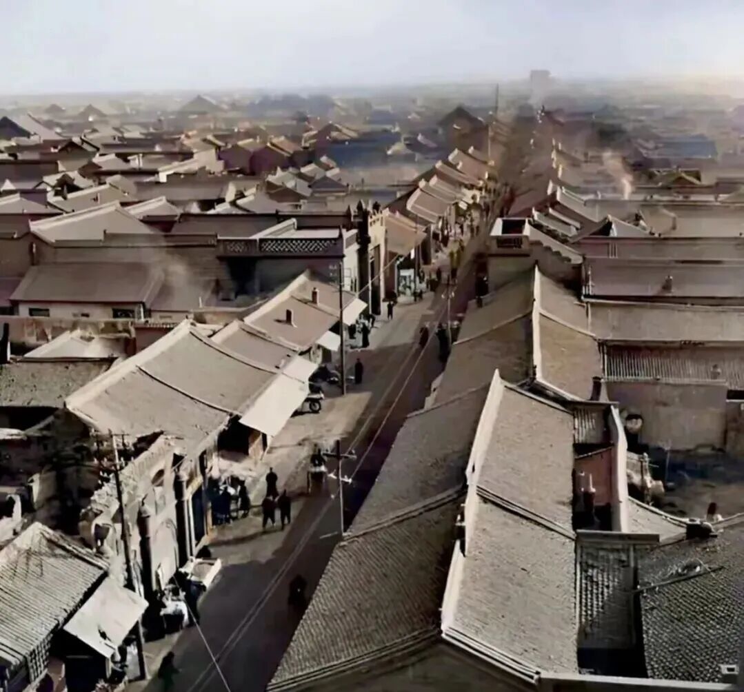 灰瓦连绵的屋顶下,整座古城在时代洪流中保持着有序的宁静。从空中俯瞰,街巷如棋盘般规整展开,勾勒出传统城市的肌理。这份宁静背后,是百姓在动荡年代依然坚守的日常生活。