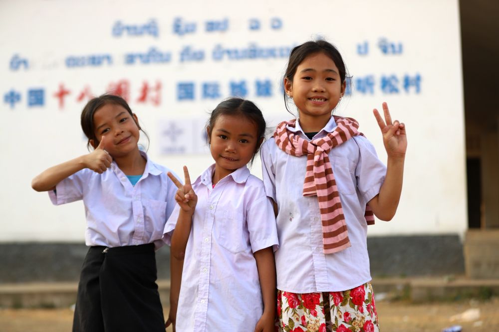 听松村的孩子们在中资企业援建的学校里合影。新华社发 杜大鹏 摄