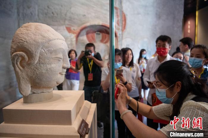 2021年7月24日,山西省太原市,天龙山石窟“第8窟北壁主尊佛首”正式回归原属地,它成为近百年来第一件从日本回归天龙山石窟的珍贵流失文物。韦亮 摄