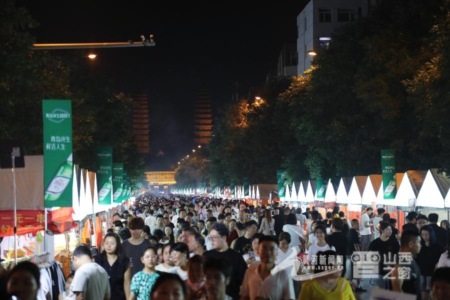 太原钟楼街灯火璀璨,摩肩接踵的游客穿梭于青砖灰瓦间,传统与时尚在此交融。