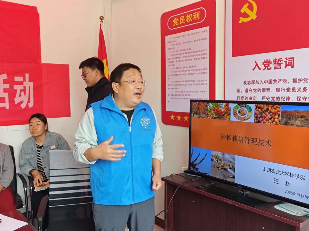 培训聚焦当地沙棘产业发展实际需求,由山西岚县沙棘小院专家、山西农业大学林学院副教授、硕士生导师王林就育苗技术、栽培管理技术及低产沙棘林改造进行授课,通过大量生动鲜活的实际案例分析,将抽象的理论转化为接地气的实践指导,帮助学员更好地将知识与实际应用结合。
