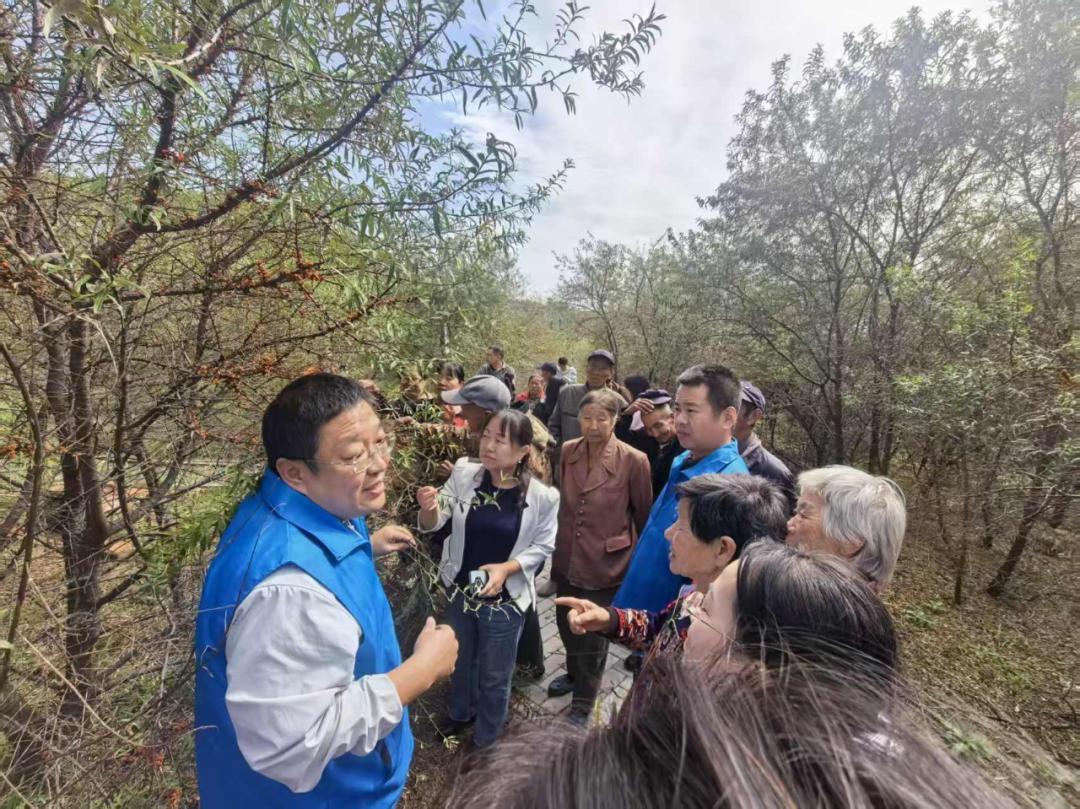 培训结束后,专家一行前往岚县沙棘科普资源圃进行实地指导。在现场,王老师一边指着挂果的植株讲解疏密修剪技巧,一边示范如何精准判断果实成熟度。他针对沙棘种植中的土壤改良、病虫害绿色防控以及采收后的初步分拣等关键环节,结合资源圃实际情况细致指导,还当场解答农户提出的储存难题,让实用技术快速落地。