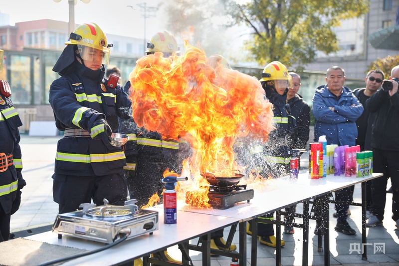 现场展示油锅轰燃灭火方式(央广网发 申辉 摄)
