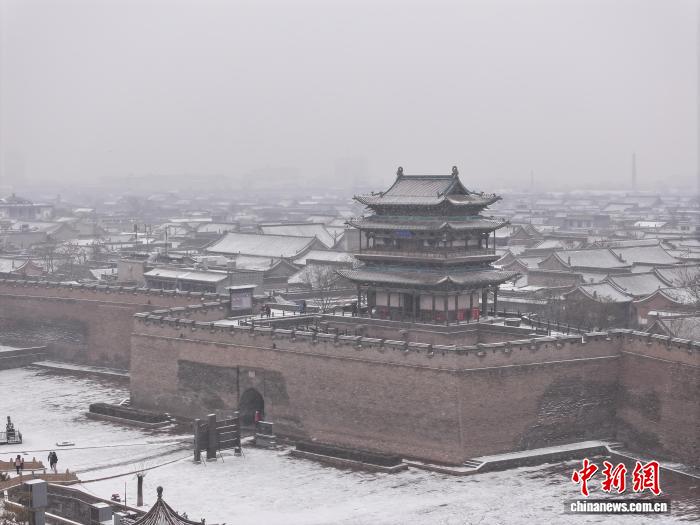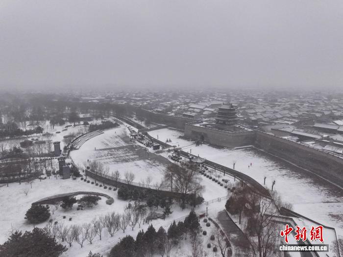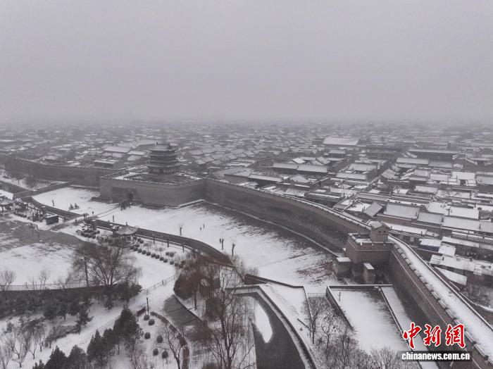 12日,山西迎来今冬首场大范围强降雪,世界文化遗产平遥古城和云冈石窟也被白雪覆盖,古城在白雪的覆盖下多了些冬日的萧瑟,云冈石窟的大佛也披上“银装”,更显庄严肃穆。图为山西平遥古城航拍图。李飞 摄