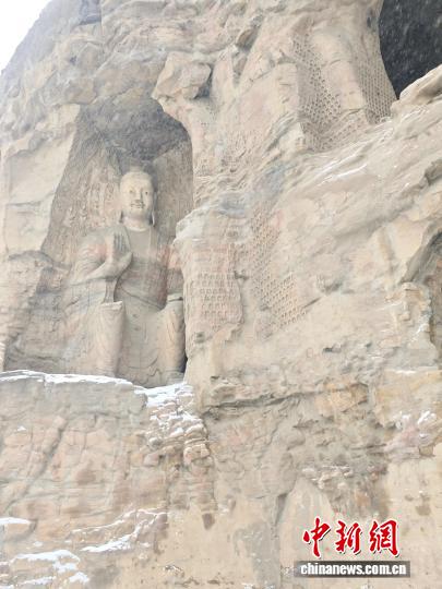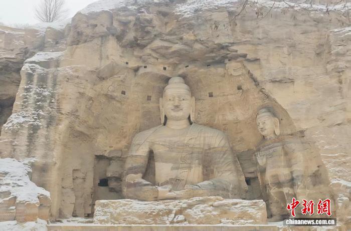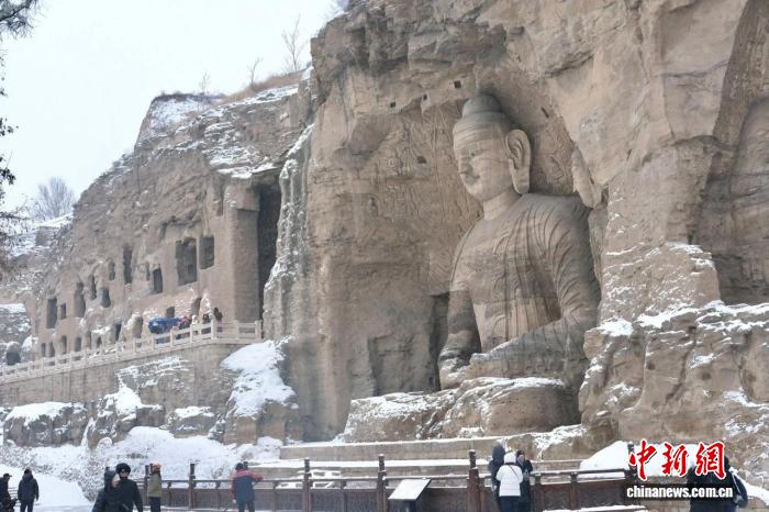 山西迎今冬首场降雪:雪落古城 大佛披银装