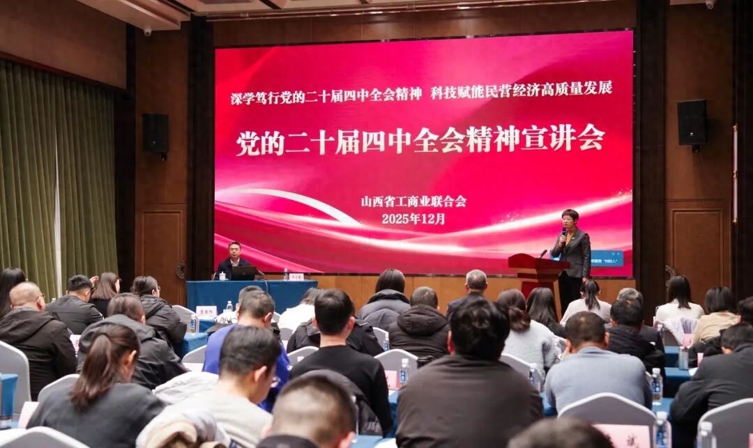 12月5日,山西省工商联联合山西省科技厅、山西省科协举办“深学笃行党的二十届四中全会精神 科技赋能山西民营经济高质量发展”主题活动。山西省工商联党组成员、副主席郭卫东作党的二十届四中全会精神宣讲,山西省科协党组成员、副主席王继龙宣讲科协服务科技创新举措,山西省工商联副主席张敏主持活动。山西省工商联、山西省科技厅、山西省科协有关部门负责同志,各市工商联、高校实验室相关负责人,山西百强民营企业、科技型民营企业、省级商协会代表等100余人参加活动。