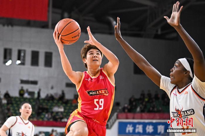 1月9日,山西队球员林育庭(红衣)在比赛中上篮。当日,在太原举行的2025-2026赛季中国女子篮球联赛(WCBA)常规赛第14轮比赛中,山西竹叶青酒队主场以96比73战胜新疆天山队。中新社记者 韦亮 摄