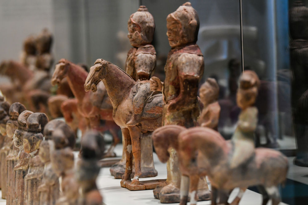 这是在山西省长治市博物馆拍摄的绿釉骑马琉璃仪仗俑。