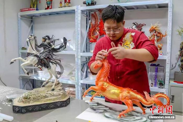在河西镇仙井村,高平市青年面塑艺人焦世杰和白仙娥一样,将传统非遗技艺与马年生肖文化相结合,创作了龙马主题面塑作品,传递龙马精神,喜迎新春佳节的到来。