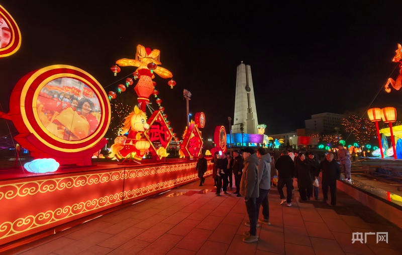 游人在革命老区武乡观灯展(央广网记者 张洁 摄)