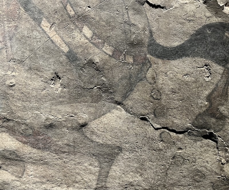 壁画中可见用尖锐工具进行勾勒打草搞的痕迹