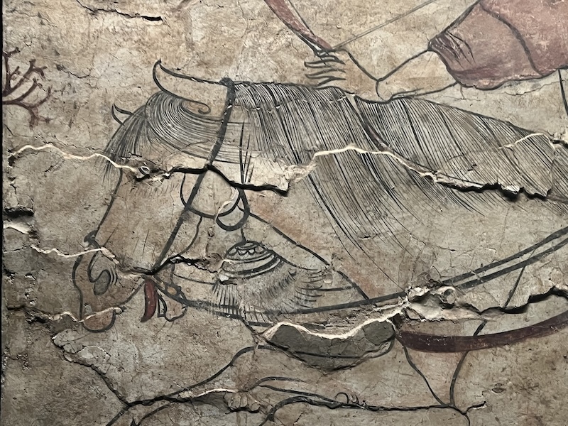 九原岗北朝壁画中的马表情夸张,如同当下的漫画