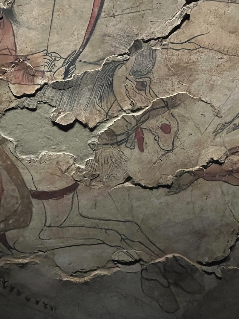 在徐显秀墓的两侧,是两个陈列室,展示了部分太原娄睿墓壁画、部分忻州九原岗壁画与部分朔州水泉梁壁画。这些壁画中有不少马的元素。其中,最为知名的是娄睿墓壁画。