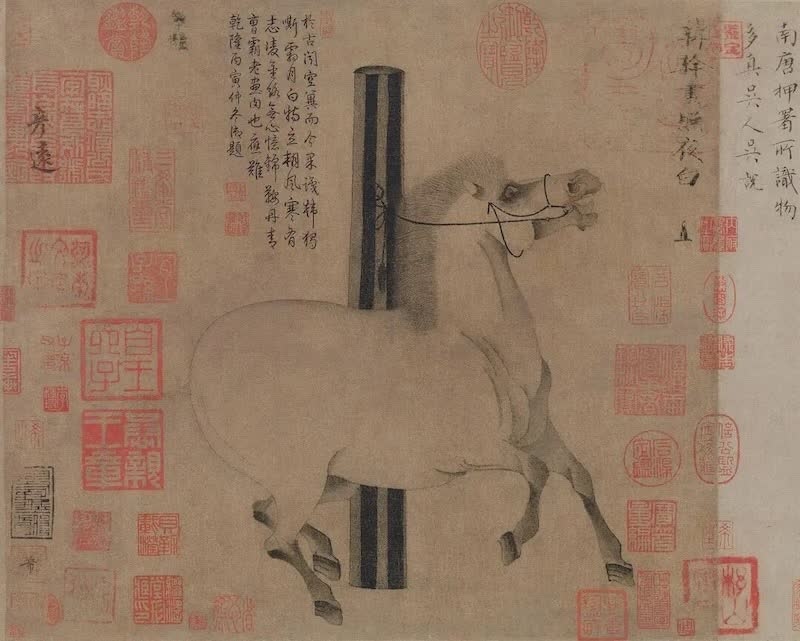 唐 韩干《照夜白图》中描绘的拴马桩