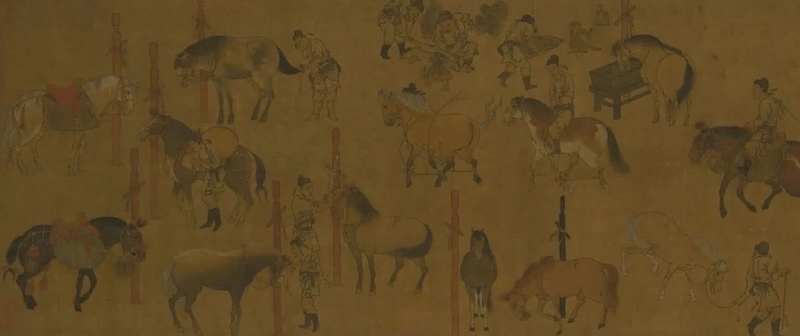 故宫博物院藏《百马图》中有描绘拴马桩