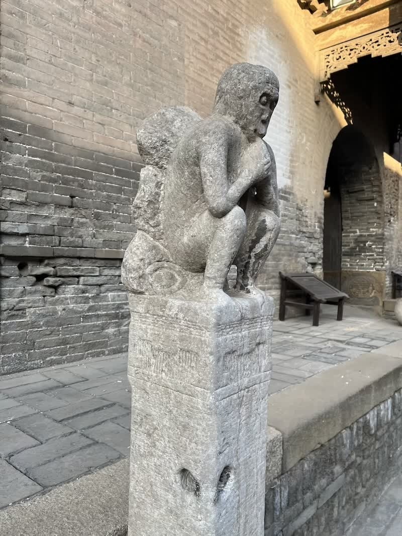 如今,在晋中的乔家大院、常家庄园等地,仍可见到明清时期的拴马柱、上马石。有的拴马柱雕刻猴子造型,寓意“马上封侯”“辈辈封侯”,体现了晋商家族对仕途的期许。