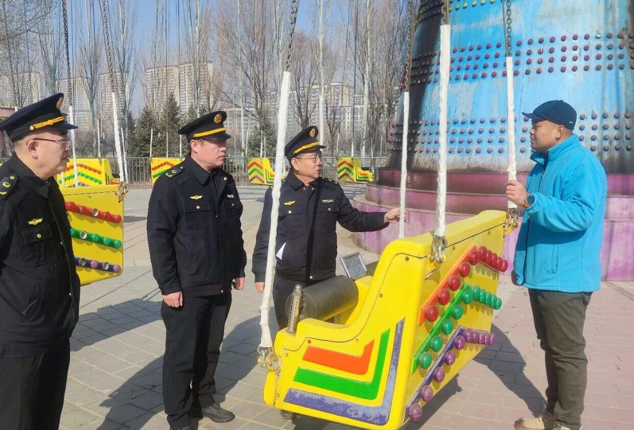 执法人员检查游乐设施。忻州市市场监管局供图