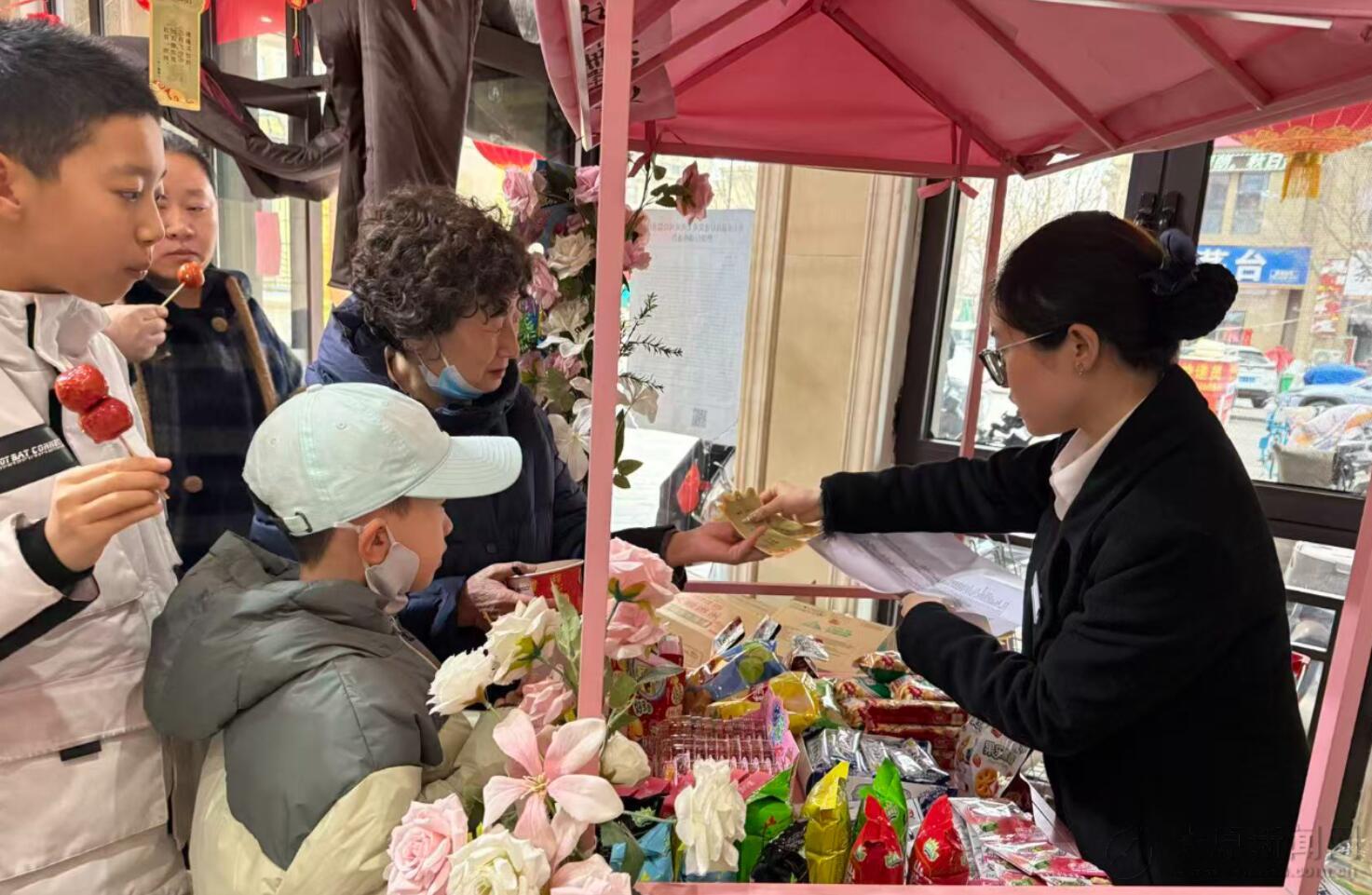 趣味猜灯谜区域人头攒动。悬挂的彩色灯谜条内容丰富,涵盖传统文化、生活常识、党建知识等,大家踊跃参与、积极作答,猜对即可获得精美小礼品,现场其乐融融、欢声笑语不断。
