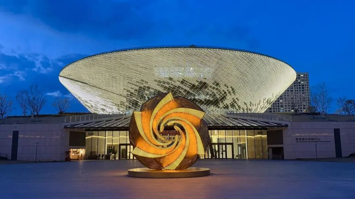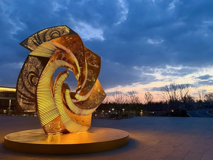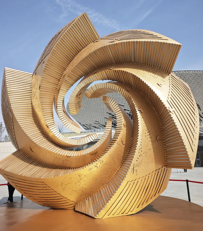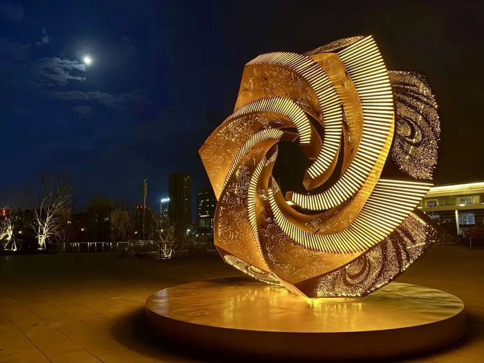 艺术家崔小清用手中的剪刀,带着对美好生活的向往,将这片古老土地上的神话传说、古建瑰宝、璀璨星空一一裁剪进百鸟朝凤的美好意境中来。通过旋转、叠加形成类似“太阳花”的形态,缓缓盛开,以开放的姿态,迎接天下宾朋,共同踏足今日这方宜居宜业游的文旅康养之城。
