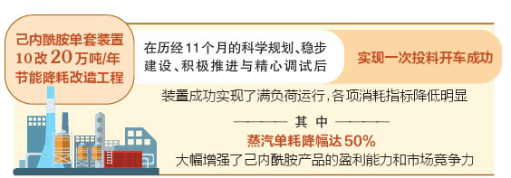 历经11个月的日夜奋战、不懈攻坚,2026年1月下旬,己内酰胺A线节能降耗改造工程顺利完成所有施工任务,全面转入气密、水联运等开车前的调试准备环节。2月10日,己内酰胺装置正式投料试车,各项工艺参数运行正常,顺利打通了全流程。3月下旬,装置成功实现了满负荷运行,单线年产能从10万吨提升至20万吨,各项消耗指标降低明显,其中蒸汽单耗降幅达50%,大幅增强了己内酰胺产品的盈利能力和市场竞争力。