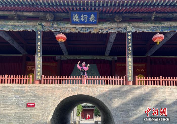 4月18日,蒲剧演员在奏衍楼表演。奏衍楼属罕见的“连三对唱”建筑形制。中新网记者 范丽芳 摄