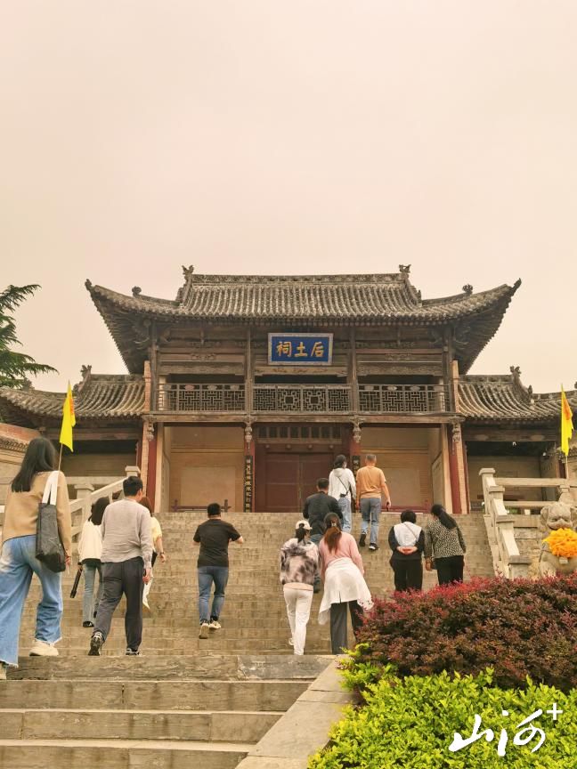 告别永济遏云楼,采风团来到万荣后土祠。后土祠地处万荣县西南,是华夏民族祭祀后土(地母)的发祥地,亦是宋代以前朝廷祭祀后土的本庙。汉武帝曾多次亲临祭拜,并留下千古名篇《秋风辞》。自汉武帝建祠始,先后有汉、唐、宋九位皇帝二十四次亲祀,被誉为“中华祖祠”,全国重点文物保护单位。这里一庙三台,呈品字形分布,不仅展现了当时独特的建筑创意,更是后土祠戏曲文化繁荣的生动见证,也是全国现存唯一的“品”字形古戏台。