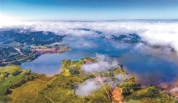 站在春日的云竹湖环湖步道上,赭红色的路面向远处的山岚延伸,原木护栏外,粼粼春波把湖心小岛的杨树剪影揉成满湖碎金,风掠过刚抽芽的芦苇丛,裹着水汽混着山桃的甜香,撞进游人的衣襟里。