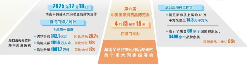 四月芳菲,琼州潮涌。4月13日至18日,第六届中国国际消费品博览会将在海南举办。这是“十五五”开局之年我国重大展会的“首展”,也是海南自贸港全岛封关运作以后的“首秀”。